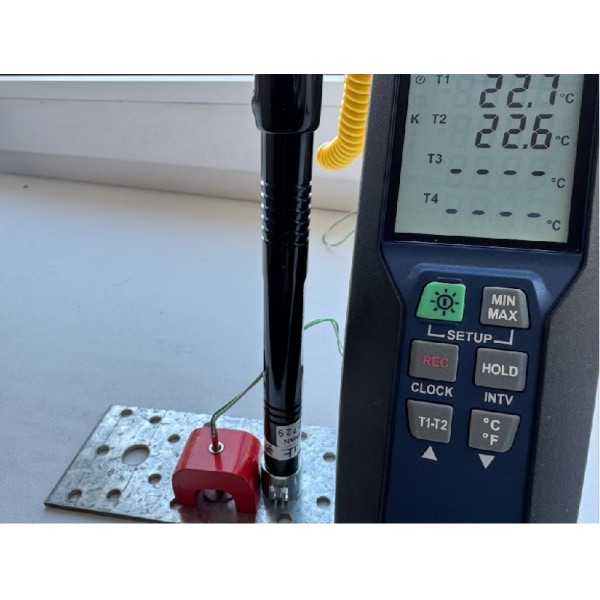 Konstrukcja sondy umożliwia stykowy pomiar temperatury w miejscach o utrudnionym dostępie. Silny magnes zapewnia dobry kontakt czoła sondy z badaną powierzchnią.